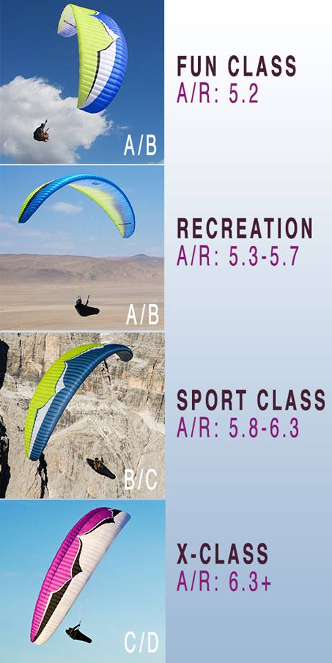 Here is how the Laragne competition is currently dividing their categories. I think their categorizations are a bit too conservative. Over time as technologies increase you will see higher aspect ratio wings that are easier and safer to fly so I believe you need to make at least a small buffer for that. It's not going to be perfect but by adding aspect ratio you help to educate all pilots about the deficiencies of glider ratings